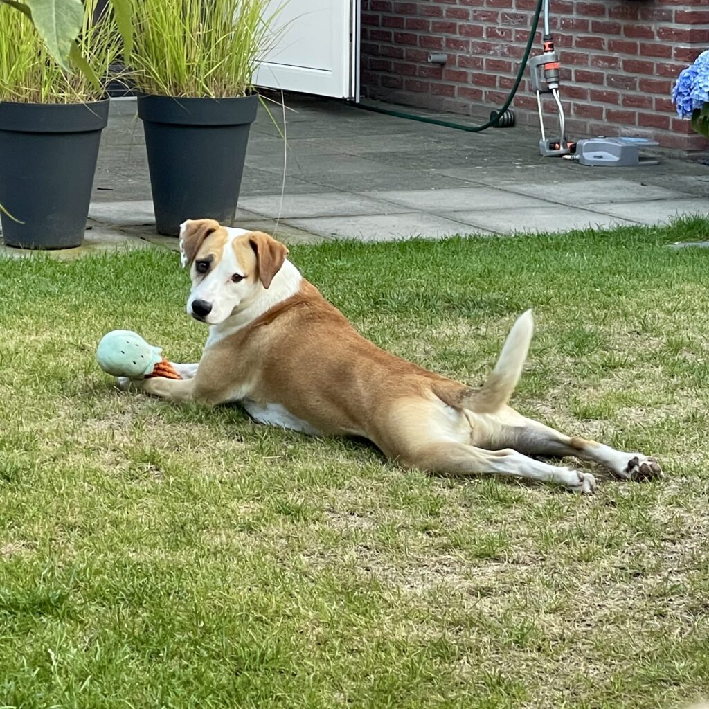 Zus kent veel commando’s en luistert hier goed naar, hoewel ze in spannende situaties wat meer moeite heeft om te gehoorzamen. Verder is ze absoluut niet onder de indruk van harde geluiden en vuurwerk. Al met al is Zus een rustige en lieve gezinshond. We zoeken een ervaren baasje die Zus een stabiele en rustige omgeving kan bieden en een vaste structuur.